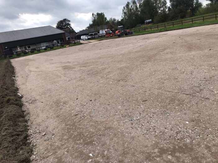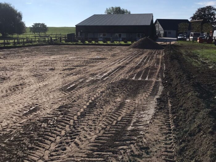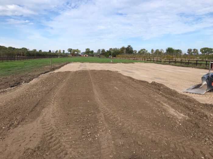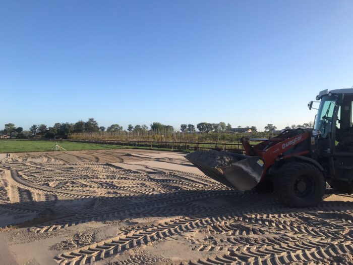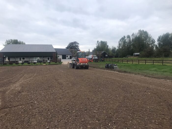 In Ochten hebben wij deze paardenbak aangelegd. Allereerst is de graslaag gefreesd, vervolgens is de manegebodem in verschillende lagen aangelegd en verhard.